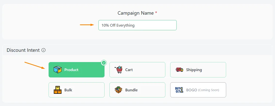 - Set the Discount Type: From the dropdown, select Percentage Discount.
