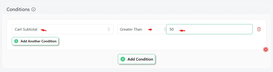 For this rule, we will need to add a condition. Here’s the process to create a cart conditional discount.